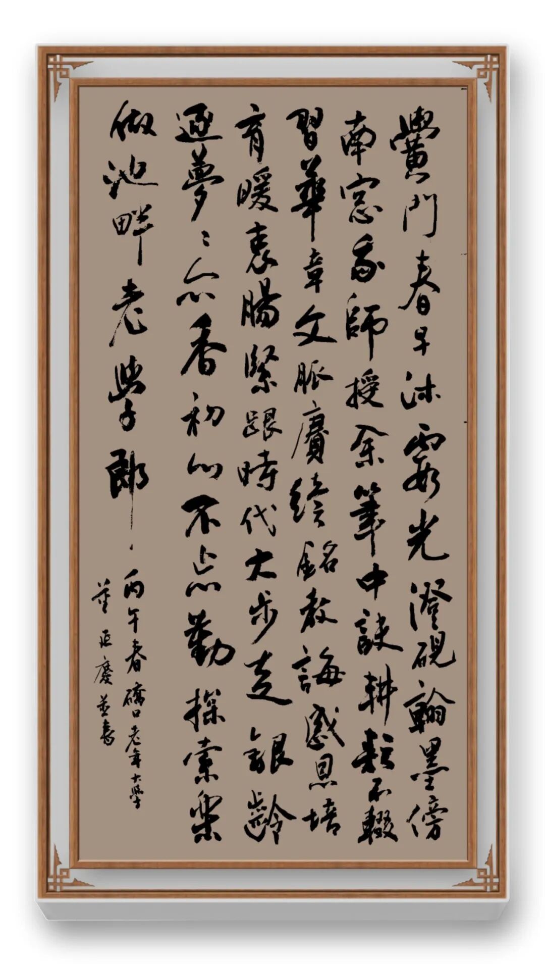 在他的笔墨里,看不到对功利的追逐,也看不到对潮流的迎合,只有对文字、对文化、对生活的纯粹热爱。他的书法是“有温度的艺术”:每一个字都带着他对人生的感悟,每一根线条都藏着他对时代的共情。这种人文情怀,让他的作品在当代书坛显得格外珍贵——在快节奏的现代生活中,他用笔墨为人们提供了一个沉静回望传统、感知文化力量的精神空间。