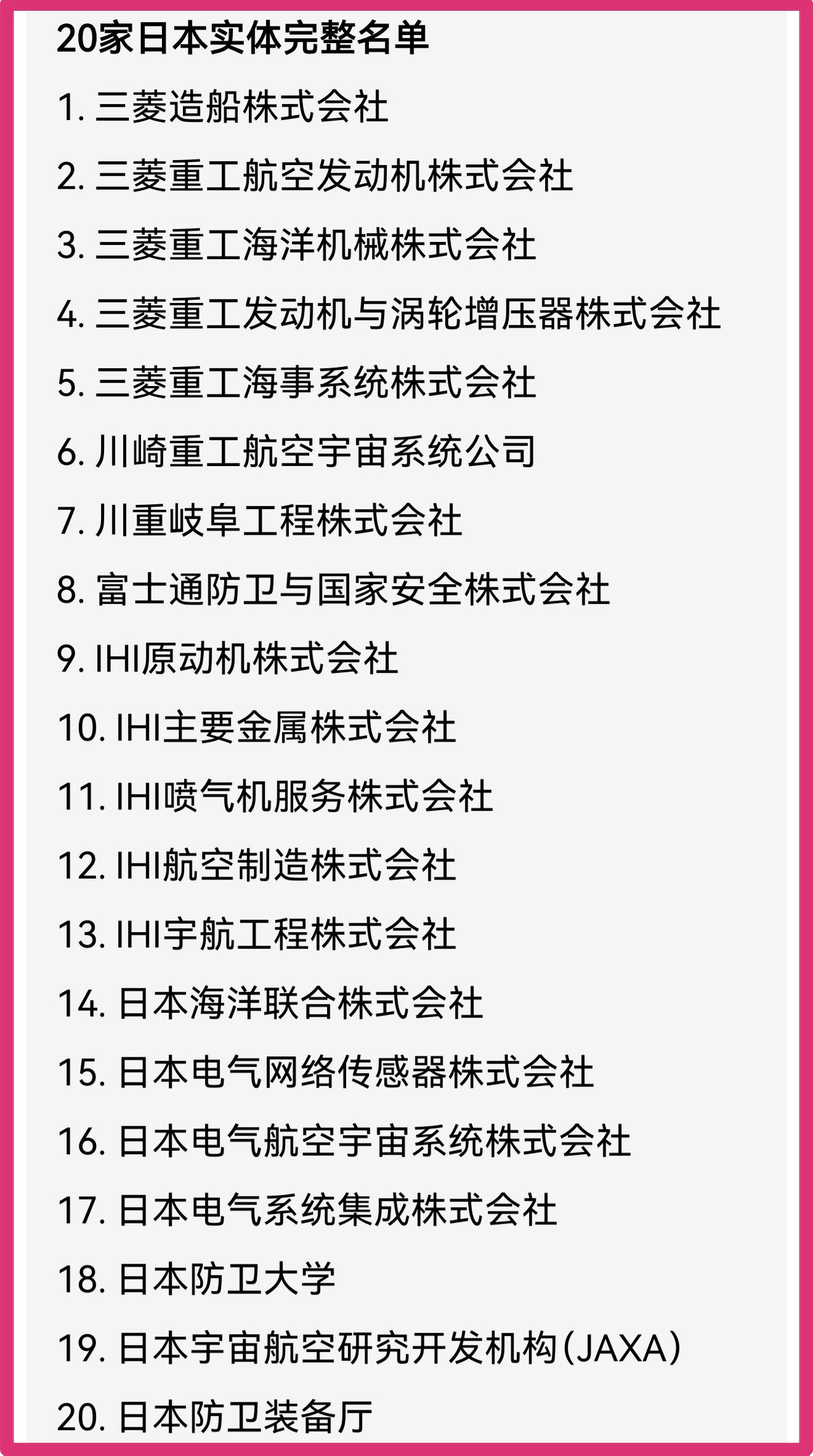 消息显示:三菱重工、川崎重工、IHI等日本军工核心企业,全部在列!