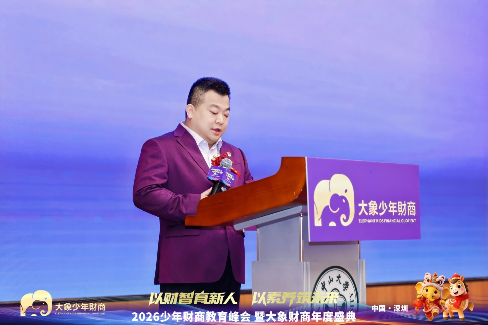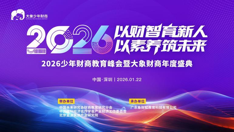 2026年1月22日,由国家关工委指导,中国未来研究会财商教育研究分会、中国国际经济合作学会产业经济工作委员会、北京蓝源民族产业研究院联合主办,广东象财赋教育科技有限公司承办的“2026少年财商教育峰会暨大象财商年度盛典”在深圳中山大学(深圳校区)国际学术交流中心成功举办。