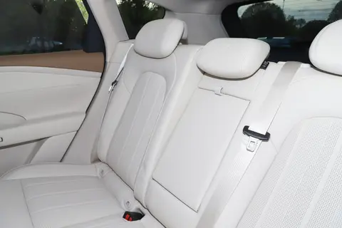 身高 180cm 体验者乘坐后排,腿部空间约两拳半,膝盖与前排座椅靠背间距约 15cm,可实现翘二郎腿;座椅坐垫长度 520mm,对大腿支撑较为充分,长时间乘坐舒适性较好。受溜背造型影响,身高 185cm 以上体验者头部空间仅余三指,存在一定局促感,高个子用户需重点关注。