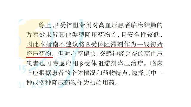 相较而言,2024版《中国高血压临床实践指南》则是直言不讳地提出:由于“洛尔类”药物(β-受体阻滞剂)对高血压患者临床结局的改善效果较其他类型降压药物差,且安全性较低,因此,本指南不建议将“洛尔类”药物(β-受体阻滞剂)继续作为“一线初始降压药物”。