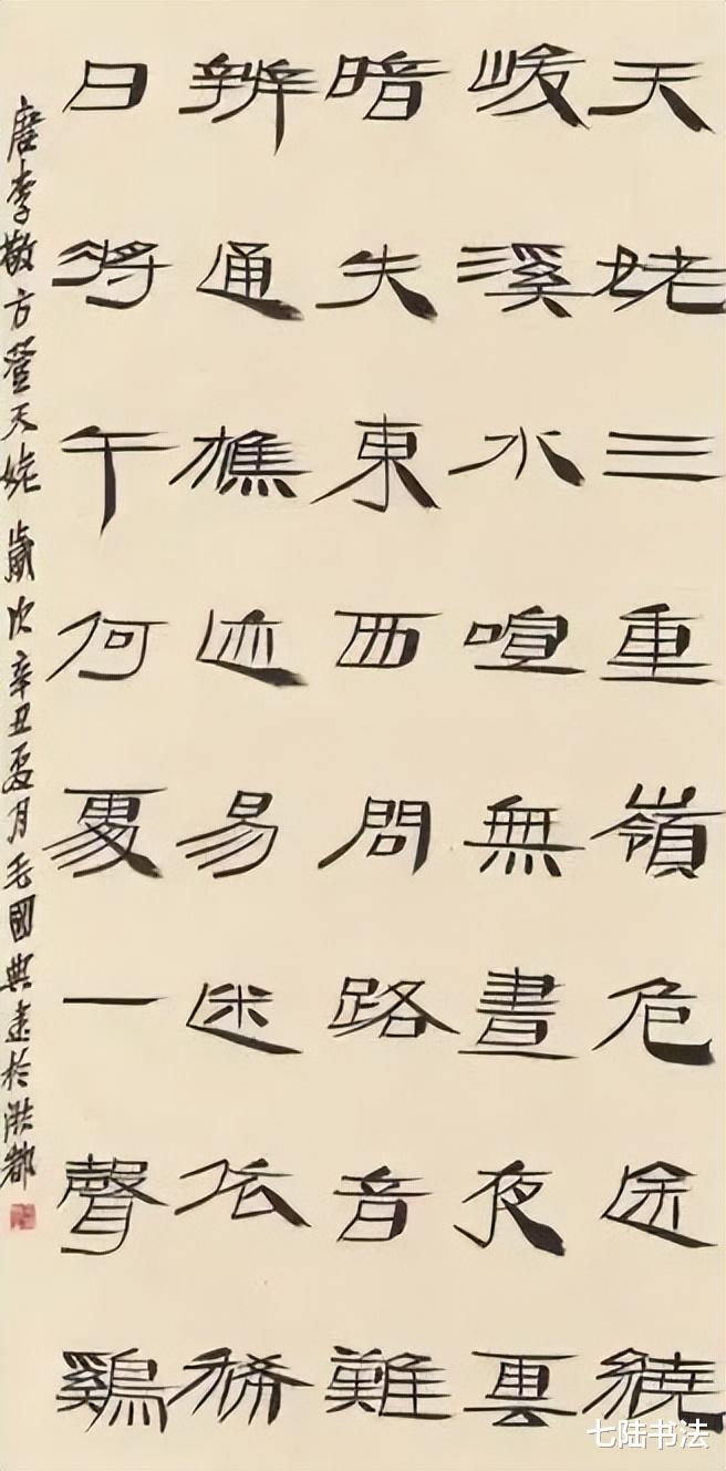 具体而言,毛国典先生的隶书艺术,在笔画、结构、章法三个层面都展现出了与传统隶书截然不同的特质,这也是普通人“看不懂”的核心原因。