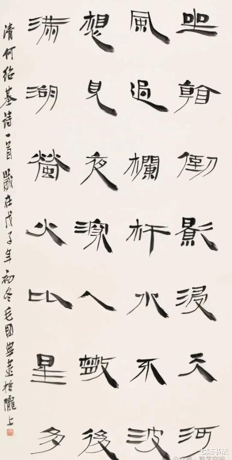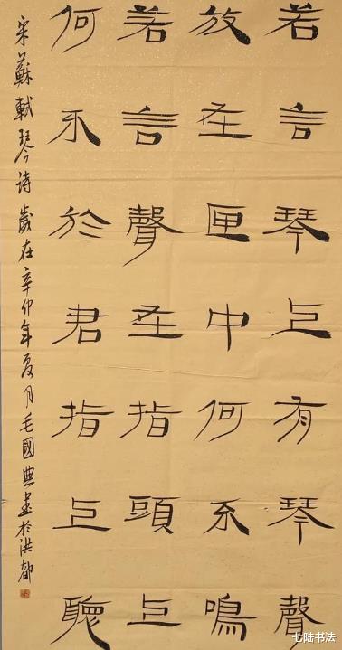在他们看来,隶书作为一种传统书体,有着明确的审美标准与创作规范,“蚕头燕尾、横平竖直、端庄规整”是隶书的核心特质,而毛国典先生的隶书则打破了这些规范,根本不符合隶书的审美标准。