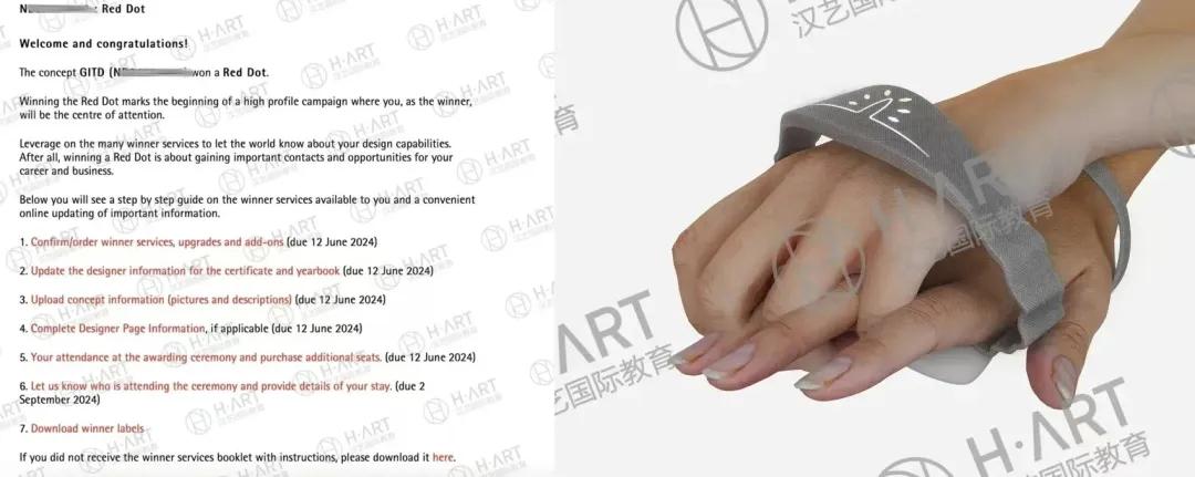 汉艺国际教育 B同学 成功保研 浙江大学 工业设计工程 获 红点设计奖、core77、A'Design、IAI设计奖等