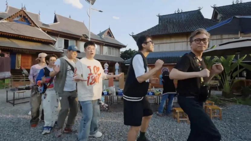 思想包袱在五哈男团的字典里就不存在,大大方方地吹牛、出洋相、故意捉弄,这种熟人间的超绝松弛感是真人秀剧本设计不出来的。就拿这期马頔和李乃文来说,肢体不协调的两人摆孔雀舞pose都被吐槽像迎客的店小二,还要完成轮滑跳舞+叼高脚杯传水这样的高难度任务。