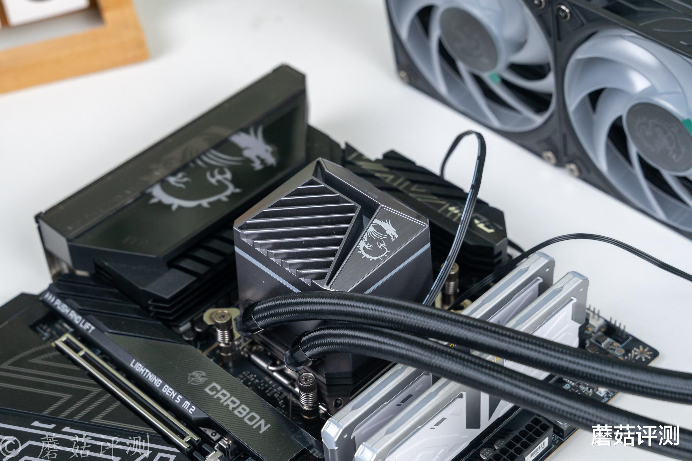 ▼水冷头采用经典的微星迫击炮系列涂装,侧面有微星经典的龙标LOGO。