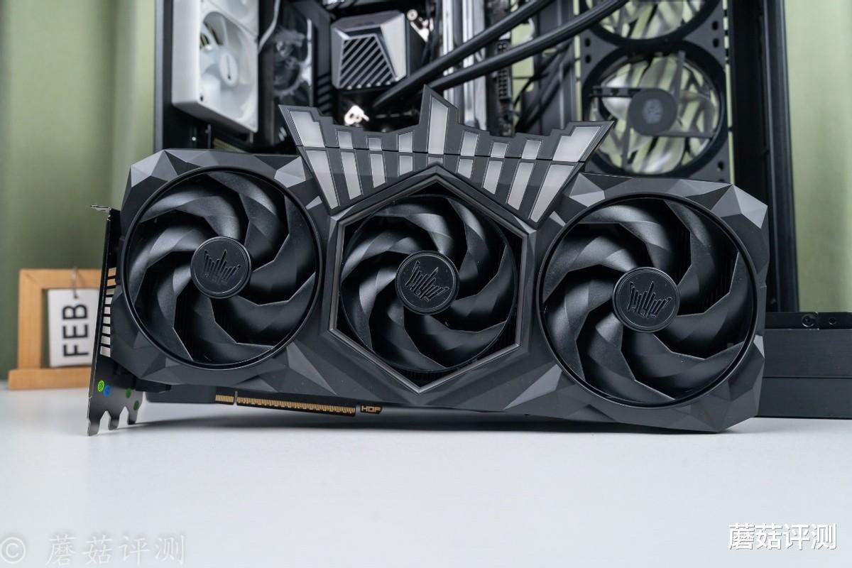 ▼显卡正面的风扇罩造型特别复杂,顶部还有影驰HOF经典的皇冠元素,还支持ARGB灯效。