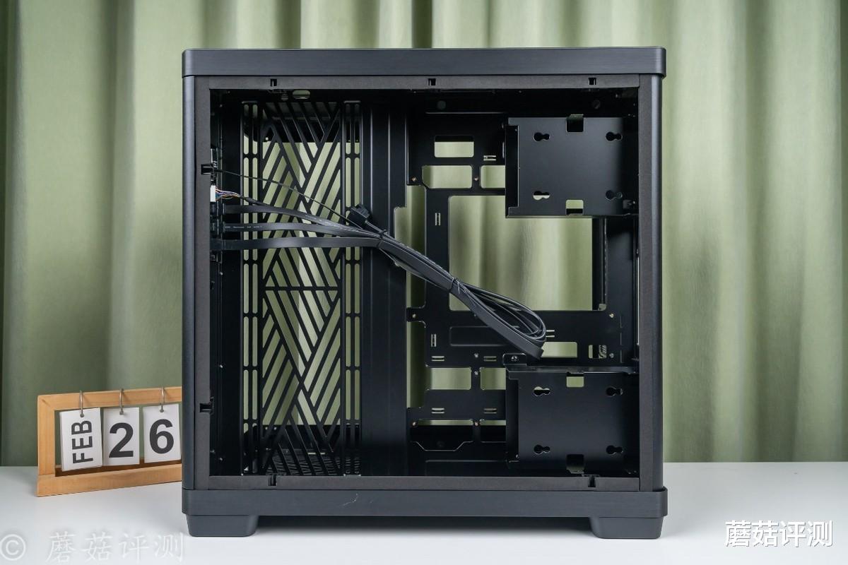 ▼机箱内部空间巨大,左侧是主板固定位,支持背插主板,上侧、侧面、下侧均支持最大140mm*3机箱风扇或水冷排安装,拓展性拉满。