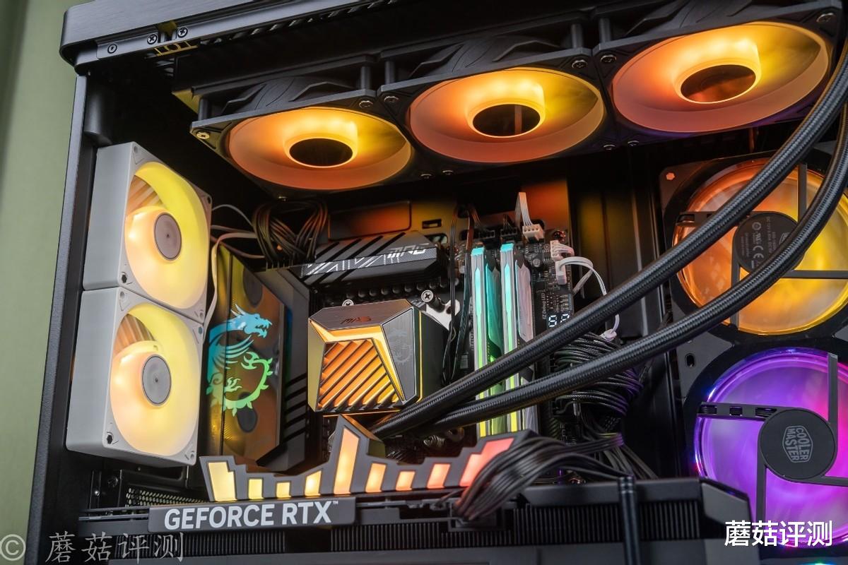 ▼靠近一些,这种感觉会更加明显,各种硬件“悬浮”在机箱内部,有点赛博朋克的感觉。
