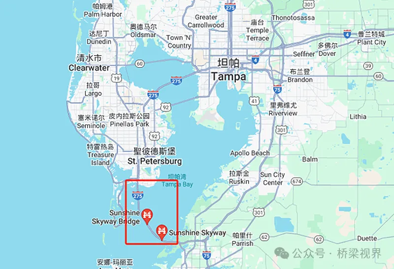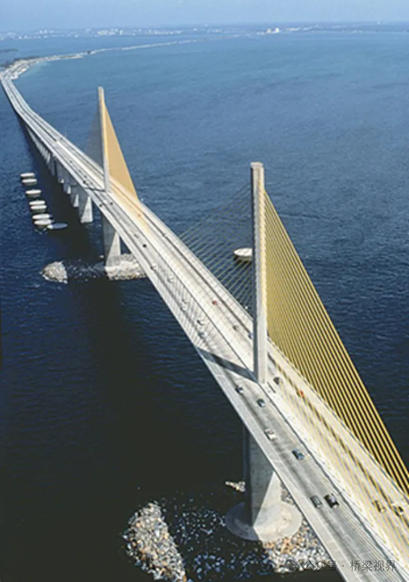 阳光大道桥(Sunshine Skyway Bridge)坐落于美国佛罗里达州的坦帕湾上,是一座混凝土斜拉桥,全长6.7公里,主跨266米,通航净空55米,连接圣彼得堡市与特拉西亚市。同时也是275号州际公路和美国19号高速公路或的组成部分。阳光大道桥跨越的航道可以通往坦帕湾港、坦帕港、圣彼得堡港和海牛港,是美国最繁忙的航道之一,因此这座桥是通往坦帕湾的门户,也被认为是佛罗里达州的旗舰桥。