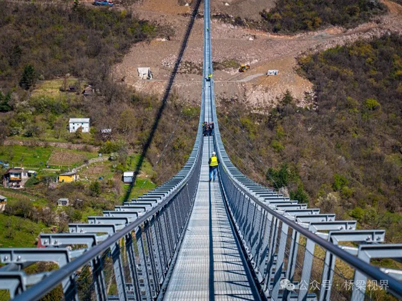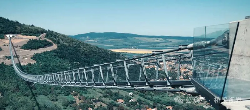 当地时间6月4日,世界第二长的人行悬索桥——民族团结桥在匈牙利东北部的沙托拉尔尧乌伊海伊(Sátoraljaújhely)向公众开放。悬索主跨达700米,为世界上第二长的人行悬索桥,其宽度也达到1.6米。景区加过桥的联票,价格13欧元,是匈牙利与斯洛伐克边境山区最新的网红打卡地。