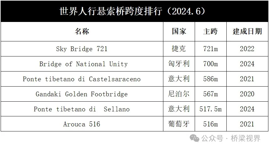 附世界人行悬索桥跨度排行榜,欢迎补充指正。