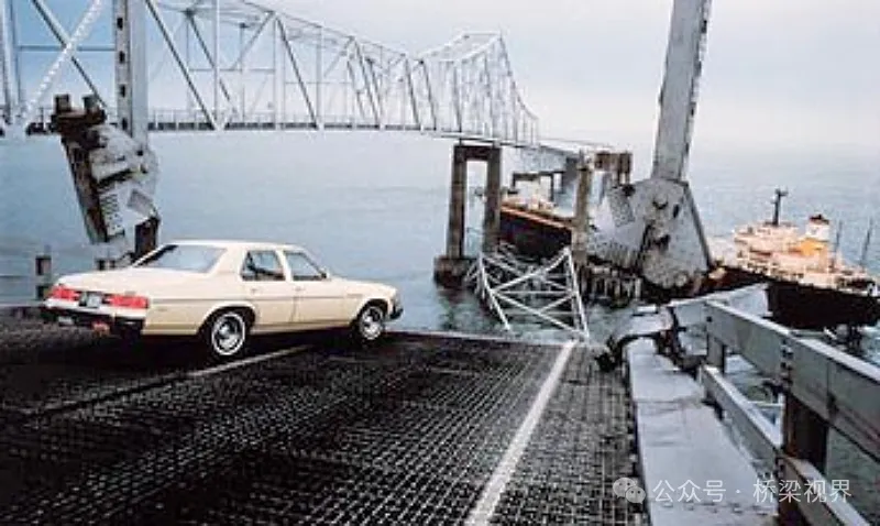 1980年5月9日上午,一艘货轮受暴风影响撞上1971年修建的第二座桥梁的桥墩,导致大桥倒塌,车辆落水,造成35人死亡。之后,负责北向交通的桥梁改为双向通行,以便回复交通。1990年旧桥开始拆除,大桥两侧边跨的入口处被改造成了公园。