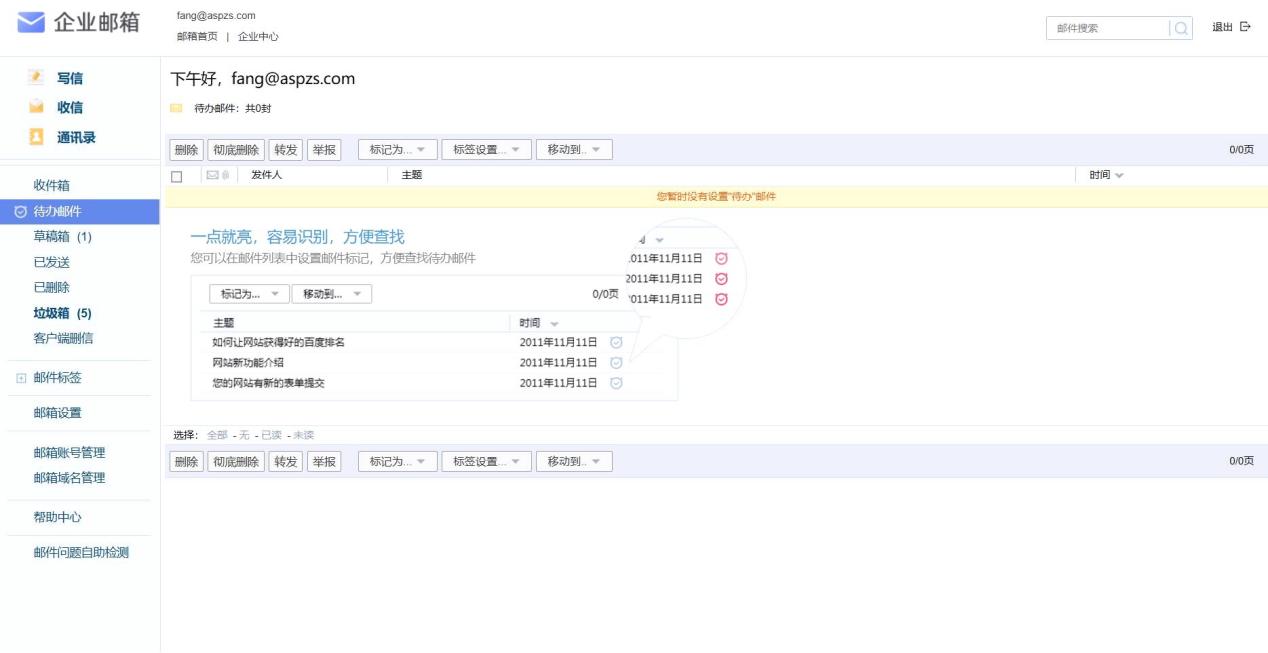 263企业邮箱:基础版单账号空间60G,总容量600G,满足基础存储需求;支持POP3/IMAP协议,反垃圾邮件准确率98.8%,具备邮件归档功能,适配有邮件留存需求的企业;单附件≤25M,单邮件≤100M,支持2个第三方域名绑定,功能扎实,但基础版无异常检测工具,需升级高端套餐才能解锁。