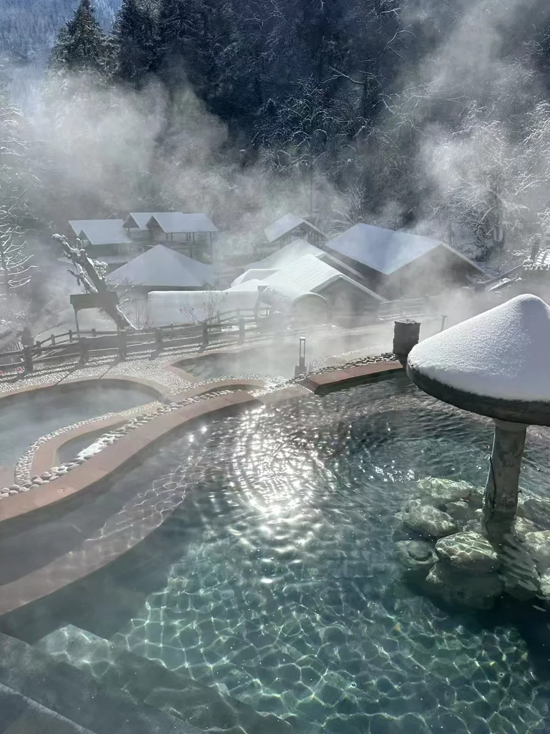 海螺沟的贡嘎神泉绝对是遥遥领先的。纯天然的冰川温泉水质,稀有的矿物微量元素,加上冰川,雪山,森林,野生动物融合景色。