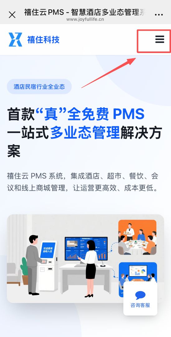 跳转到PMS后台界面后,酒店可根据操作指引进行PMS房态设置,房态管理、订单录入等核心功能直接可用。