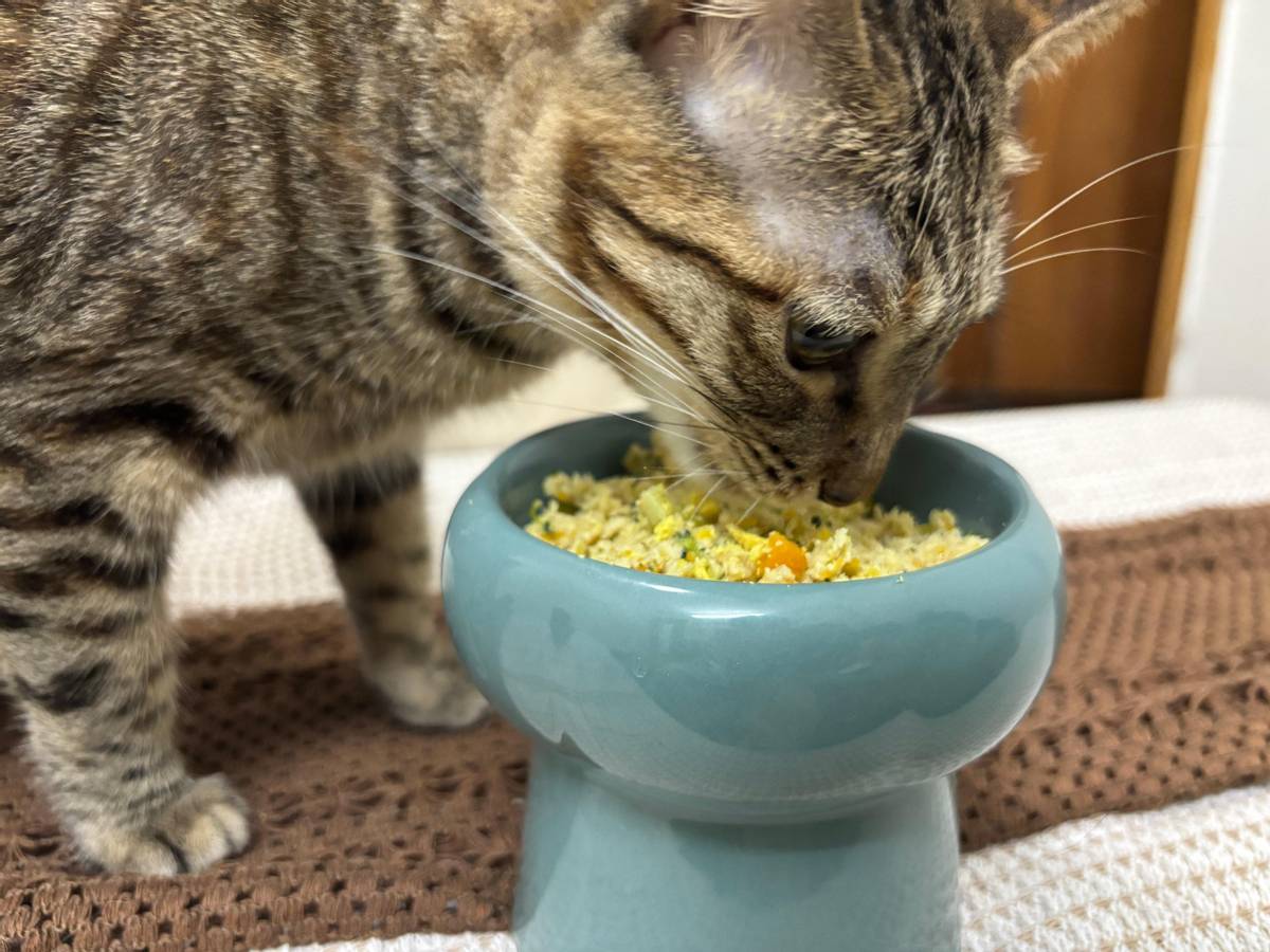 朋友来家里撸猫,我的猫毛亮、体味轻,朋友都问我是怎么把猫养那么好的。我说主子每顿都是吃自制猫饭呢,他们都惊讶说我真有耐心。其实刚开始我也只会把肉煮熟端给它吃,后来慢慢学比例、查资料、记笔记。猫现在五岁,状态很好。