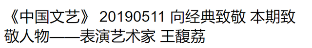 《中国文艺》-2019-05-11——《向经典致敬 本期致敬人物——表演艺术家 王馥荔》