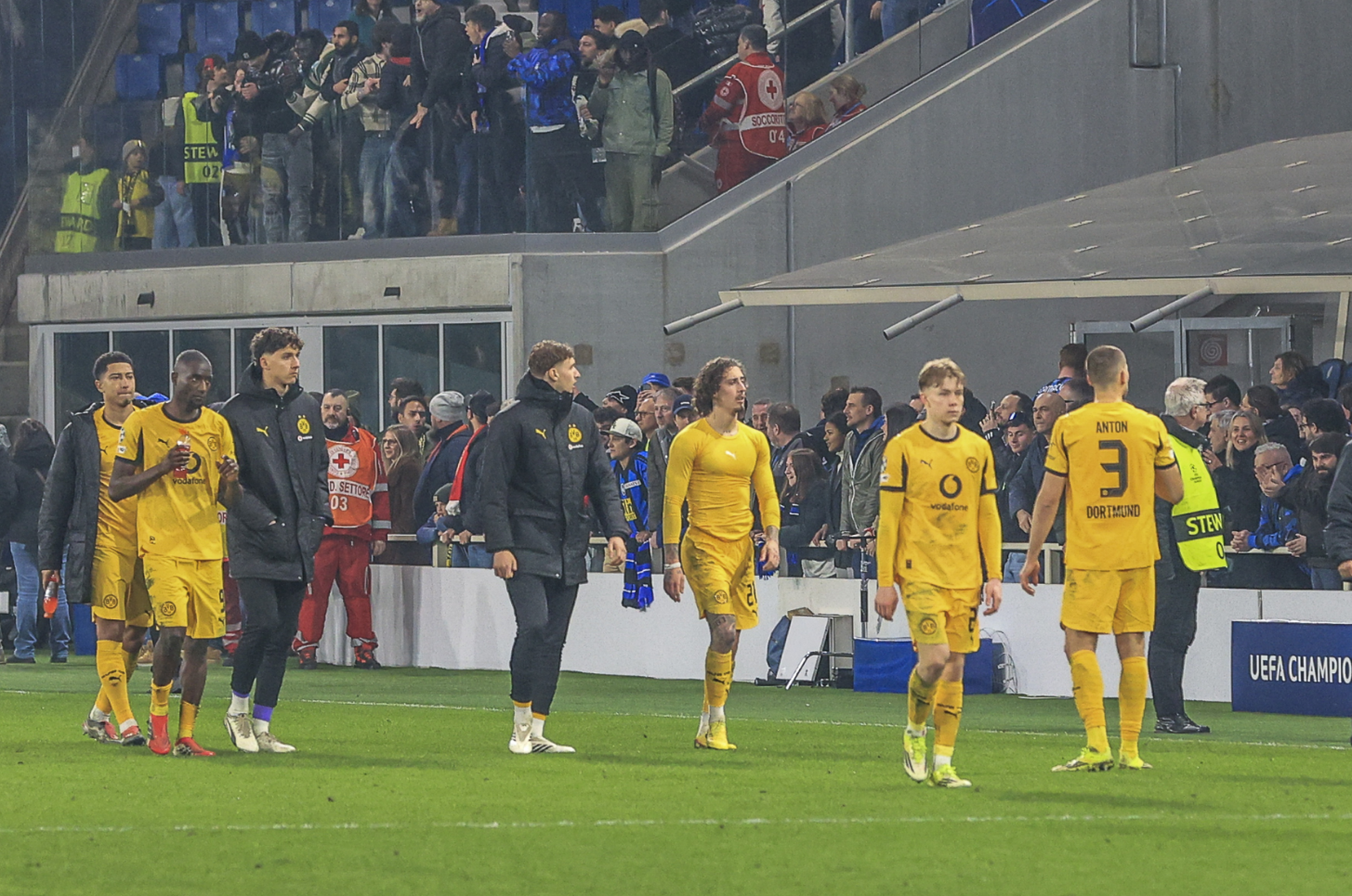 多特蒙德本周中刚刚经历了一场欧冠赛场的噩梦。在欧冠附加赛淘汰赛中,多特蒙德首回合主场2-0领先亚特兰大,次回合却在贝尔加莫以1-4惨败,总比分3-4被亚特兰大逆转淘汰。
