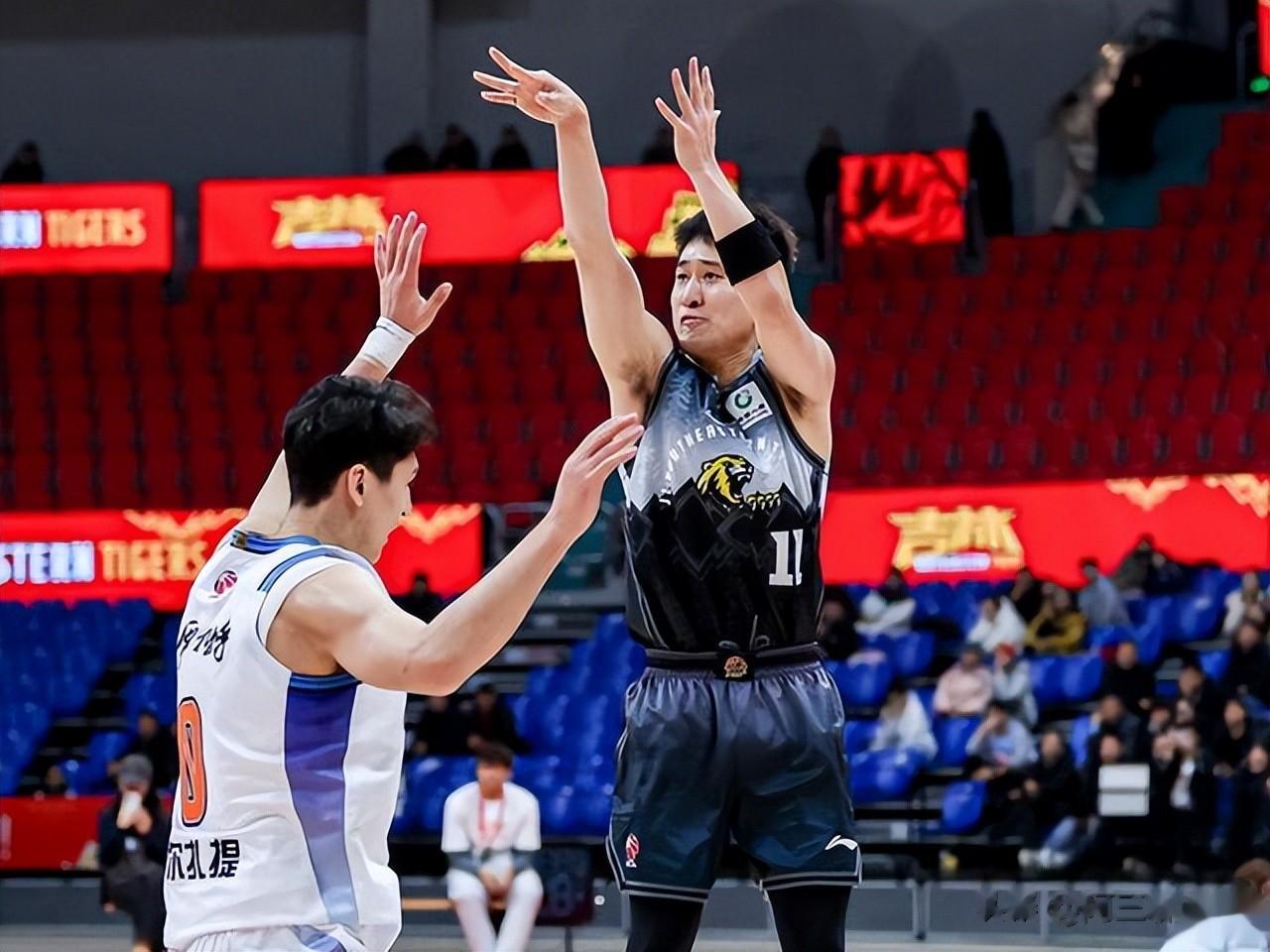 宁波队的宁鸿宇,是个2米08的大个子投手。本赛季38.2%的命中率,场均扔2.6个进1个。1月11号打广厦,三分7中4拿14分,是大个子里的异类。他也是第一次参加,经验是短板。
