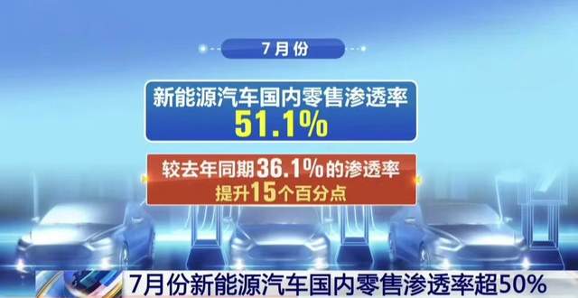 数据表明,今年4月上旬,新能源汽车渗透率有两周首次达到50%,再到7月的整月突破50%,历时不到3个月,创下中国新能源车市销量历史新高,这是又创下了一个新的里程碑,值得关注。