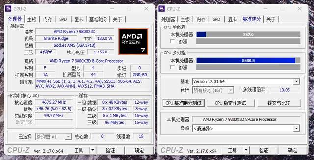 AMD锐龙7 9800X3D处理器基于先进的Zen 5架构和4nm制程工艺打造,拥有8核16线程的规格。其最大的亮点在于延续并革新了备受好评的3D V-Cache技术,将三级缓存容量大幅提升至96MB,从而为游戏性能带来质的飞跃。
