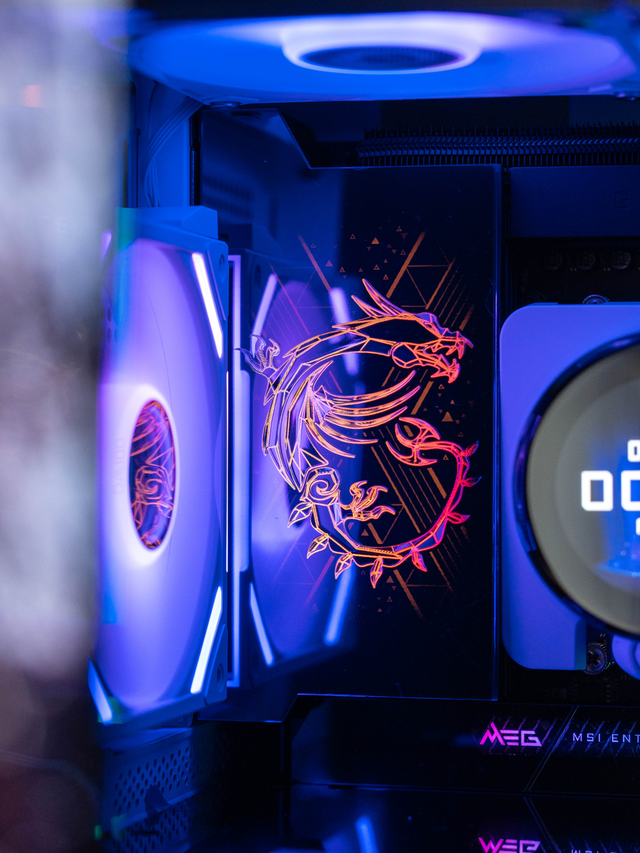 说到这个散热装甲,微星还提供了一个配套展示盒(也就是右边配件箱里有“X”Logo的盒子)。把限量散热装甲放在展示盒内,在背部接上电源,就能提供动态显示效果,情绪价值拉满。