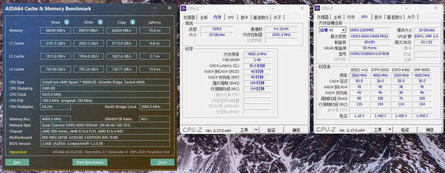 AIDA64测试,佰维DW100 OC LAB 双EXPO 联名款在高频EXPO预设模式下,读取速度为66290MB/s,写入速度为89670MB/s,延迟为74.9ns。