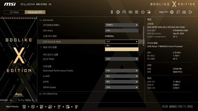 除了简易模式,也可以按传统方式进入高级模式,在CPU超频页面开启处理器的X3D模式。