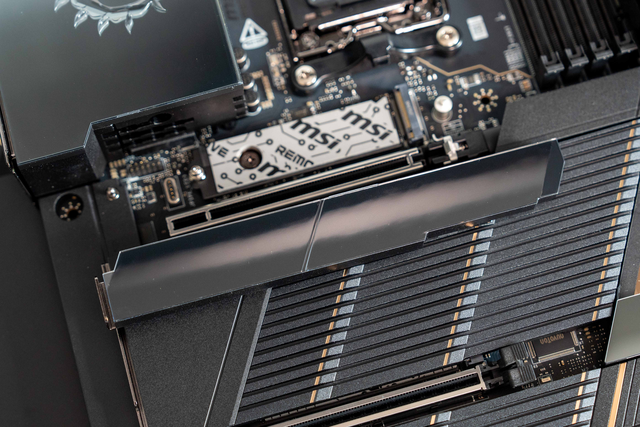 再加上M.2拓展卡,微星MEG X870E GODLIKE X EDITION主板一共提供7个M.2插槽,4个走PCIe 5.0x4通道,3个走PCIe 4.0x4通道,简直是天花板的配置。