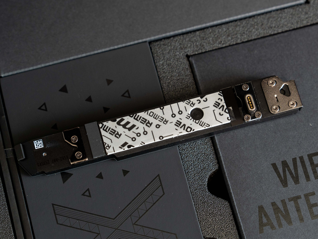 正式打开包装,上层是左右分布的两格配件箱,除了常规的线材和WI-FI天线,还有相当多专属配件,提供隆重而奢华的开箱体验,我们从左到右逐一来看。