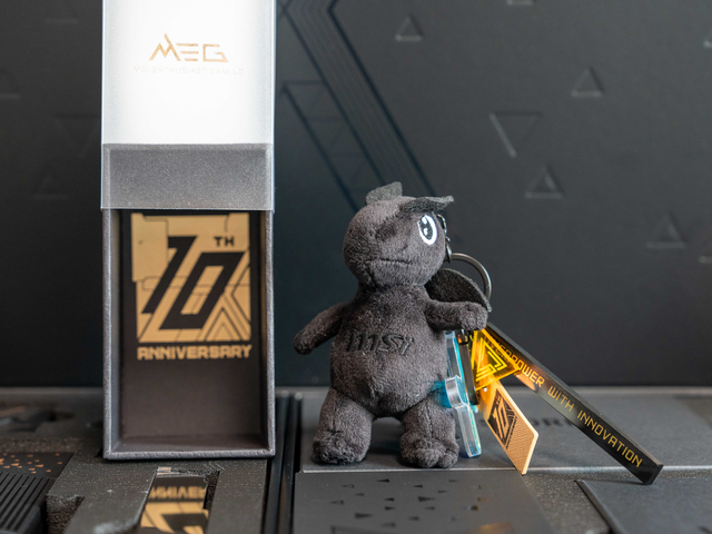 在EZ 控制集成器的隔壁有一个MEG Logo的小盒子,里面装着微星十周年黑色小红龙钥匙扣,十分可爱。