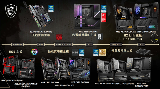 这个传奇的故事始于2015年,当时发布的X99A GODLIKE GAMING主板,不仅奠定了该系列的基石,更被广泛认为是引领了整个电竞硬件RGB灯效美学的先驱。在过去的十年里,每一代GODLIKE都承载着探索极限的使命,将不计成本的堆料与突破性的创新相结合,成为了硬件发烧友们心中顶级性能与前瞻科技的代名词。