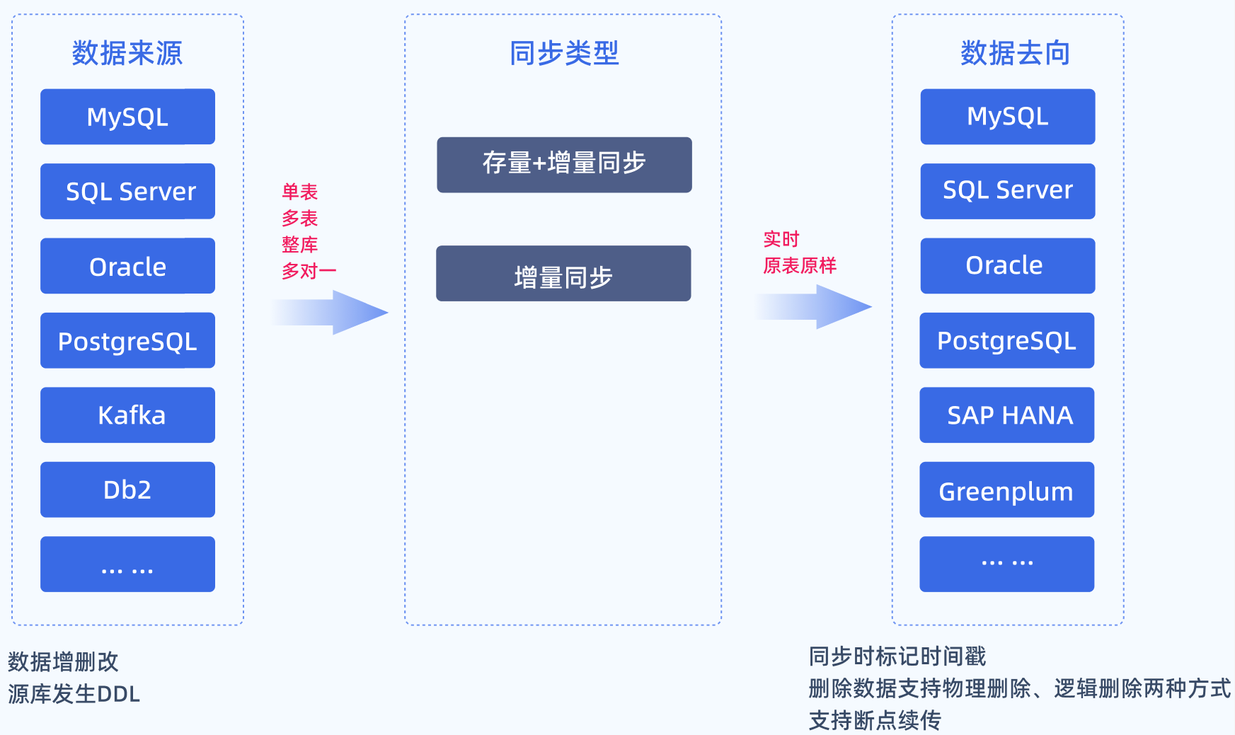 现在有很多专业的同步工具会在本地记录已经同步的日志位点,比如MySQL的binlog文件名和偏移量,重启后能从中断的地方继续。