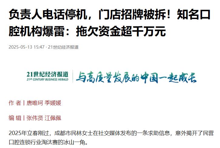 希望这场行业“退潮”之后,留下的是更规范、更靠谱的口腔机构,别让“看牙”变成一种负担。