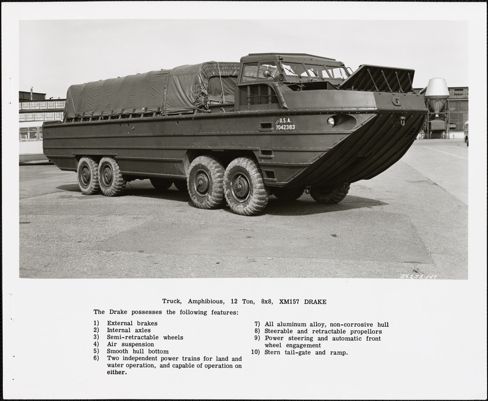 冷战初期美军曾憋过一款“ amphibious 王者”——XM157“德雷克”(Drake)8×8两栖卡车,本想取代二战名车DUKW“鸭子”,结果却只造了原型车就被放弃,成了两栖装备发展史的有趣注脚!