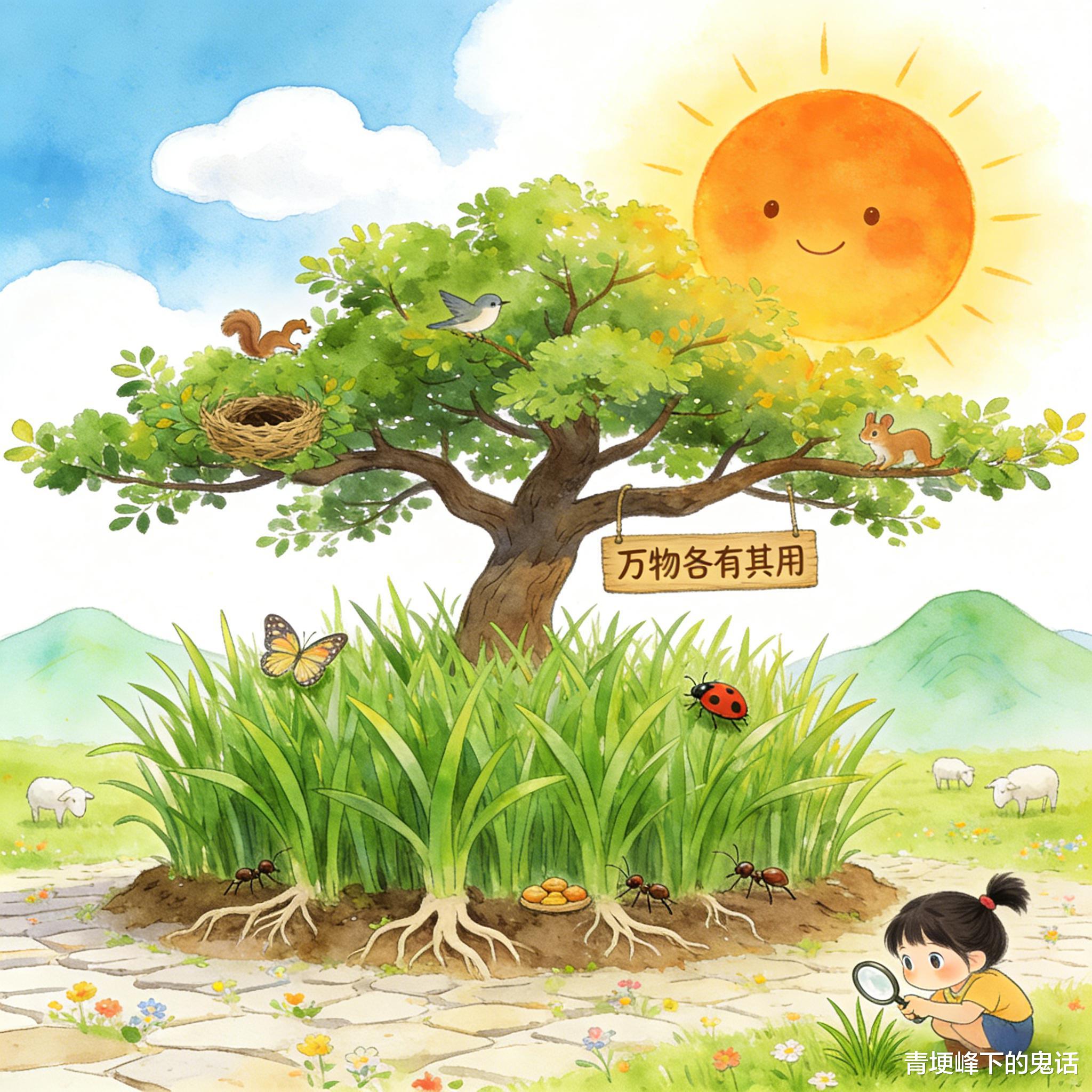 第三步:捧一踩一。 让“太阳公公”担任唯一裁判,用“是否长得高大成材”这把极度单一的标尺,宣判树的“成功”和草的“失败”。