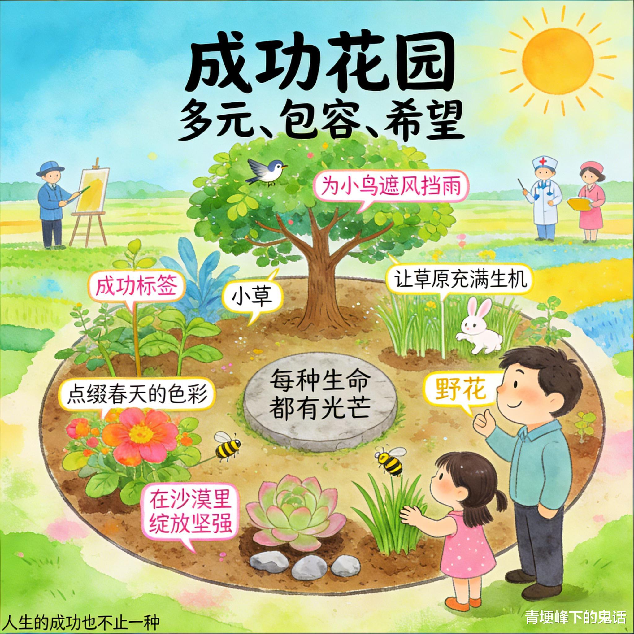 如果我的女儿接受了这套逻辑,她将来会如何看待自己?如果她天性如“小草”,不喜竞争,享受平凡,她是否会觉得自己“不够成功”?她又会如何对待身边那些“小草”一样的同学和朋友?