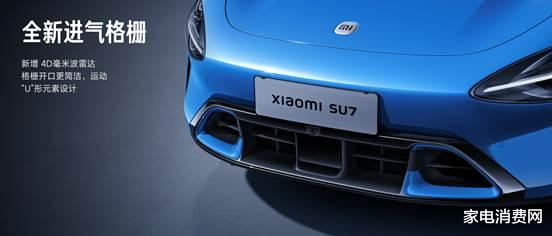 在外观细节方面,新一代SU7最明显的升级是采用全新的进气格栅设计,造型更加简洁运动,C形装饰环比例放大,制动散热风道开口更大,中央集成4D毫米波雷达,兼顾空气动力学与智能感知能力。