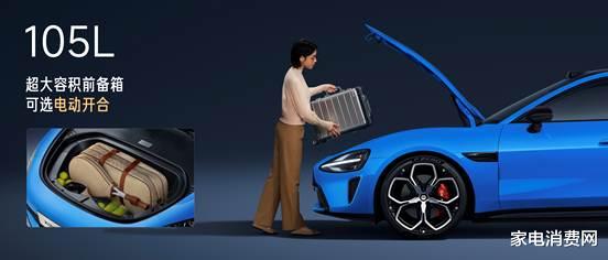 全系标配Ultra同款电动前备箱,支持8种开合方式,容积达105L,可容纳20英寸登机箱。开启方式包括车外实体按键、中控大屏、小米汽车APP、小米汽车APP小部件、遥控钥匙、UWB近场控车、车内小爱语音、车外小爱语音。