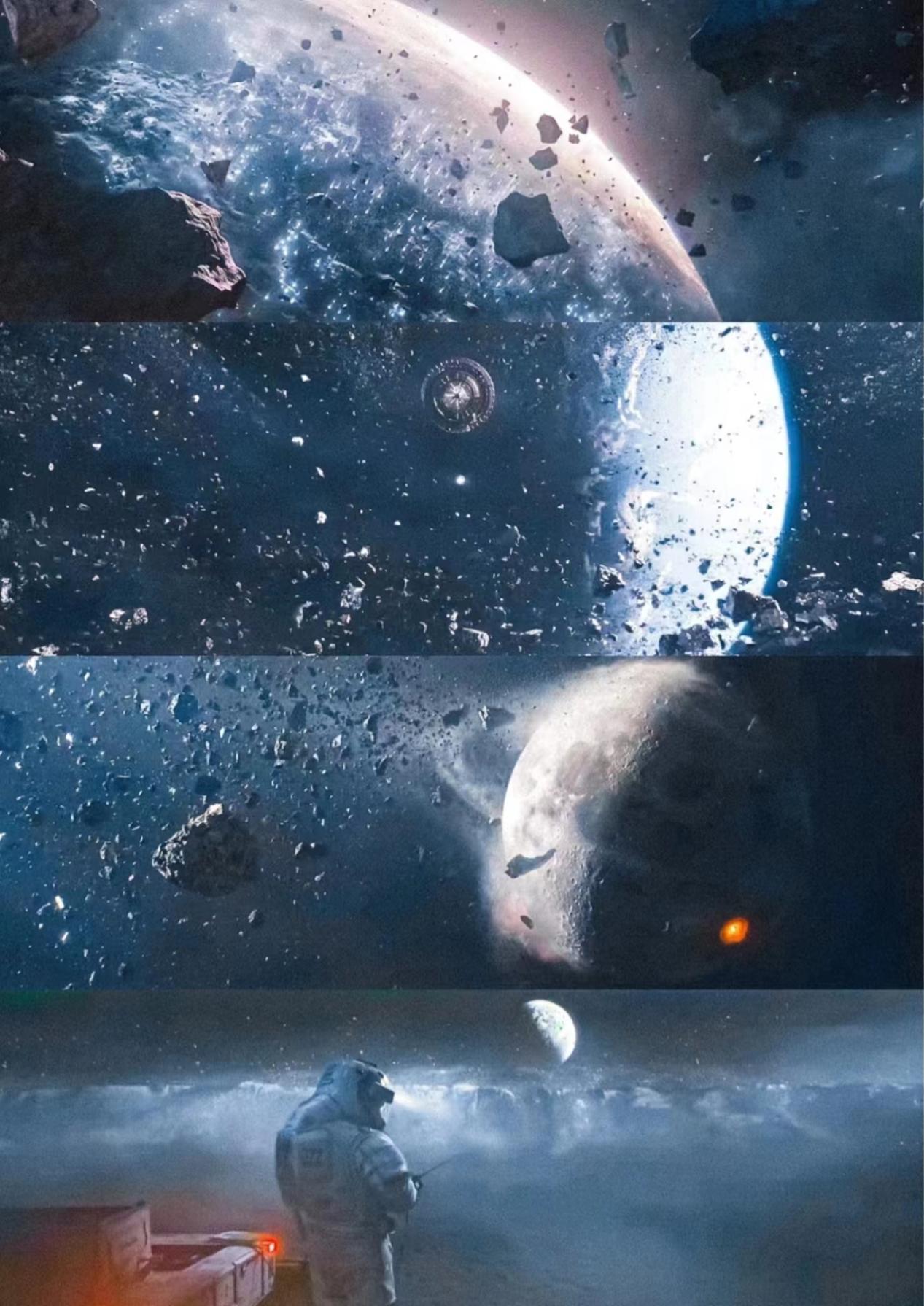 而月亮爆发后的残骸,则化作一颗颗陨石,直奔地球而来,更是让人心惊肉跳。