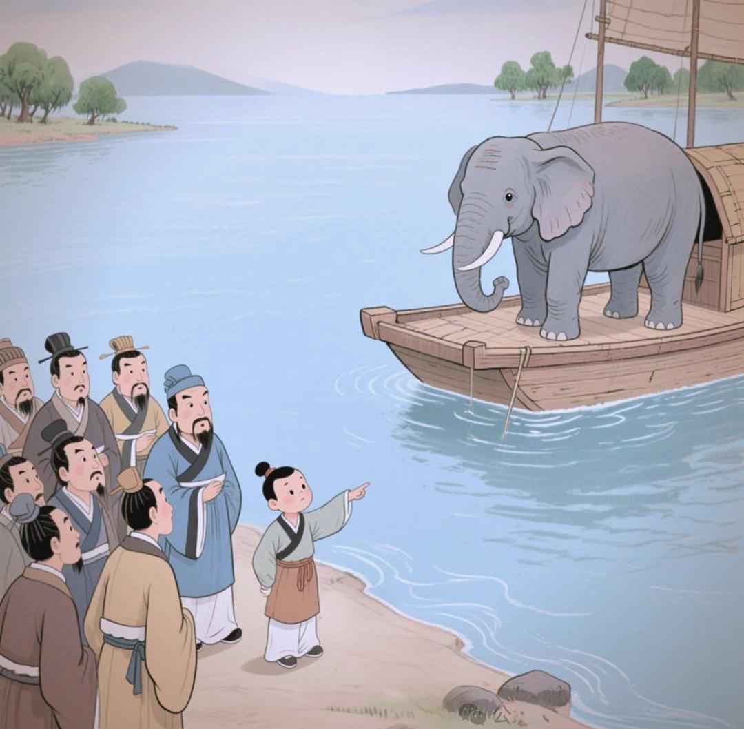 曹操站在高台上,捋着胡须问身边的谋士们:"诸位,可有法子称出这头象的重量?"