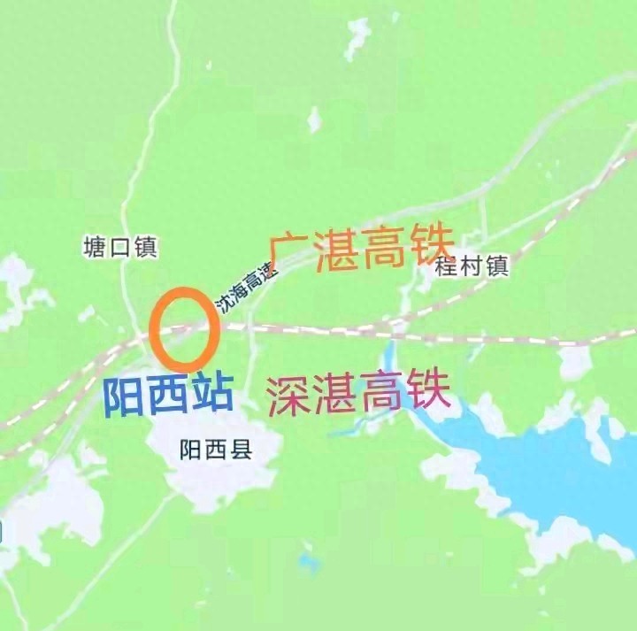 广湛高铁是连接广州至湛江的高速铁路,设计时速为350公里左右,并且主要是为了打通大湾区与海南自贸区之间的通道。在阳江境内设置了阳江北站、阳春东站以及预留了阳西站,在原有深茂铁路上设有的几个车站之外,阳江成为粤西第一个县市通高铁的地级城市。很多人认为这是对时速两百多公里的深茂铁路进行重复建设,其实两条线路的服务定位不同,一条为高速长途服务,另一条兼顾短途和普速。