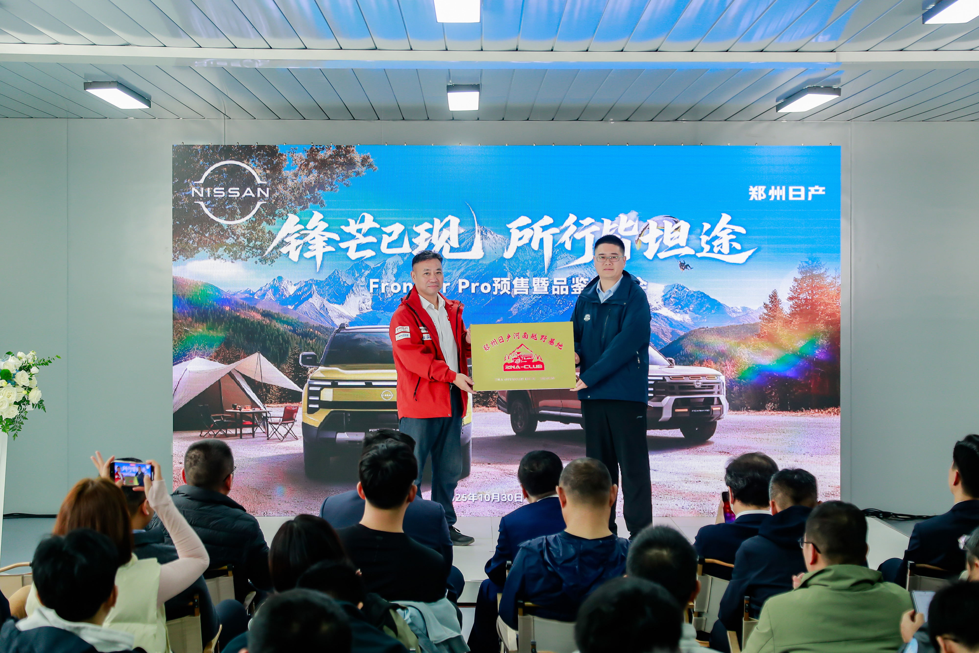 (郑州日产市场部副部长李岩向河南炎黄越野基地主理人宋海涛授牌)