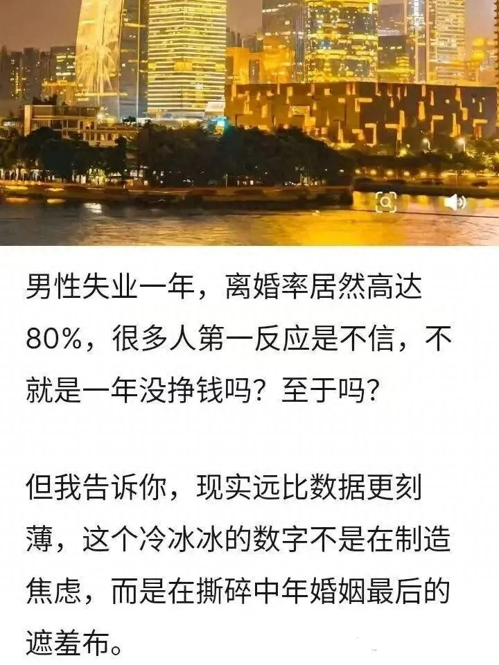 这两年,随着经济下行,就业环境也不好,越来越多男性也算看清了很多事情,比如说大量的男性在失业或者收入大减以后,给他最大伤害的恰恰不是生活,而是他们花大价钱娶回家,一直想着白头到老的枕边人。