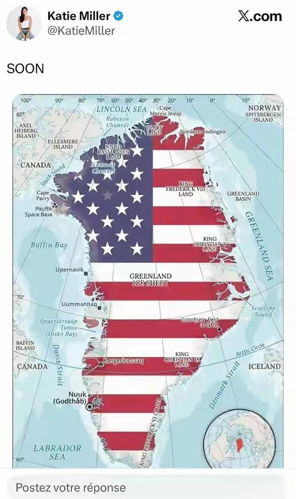 美国政府官员的妻子发布覆盖美国国旗的格陵兰岛照片