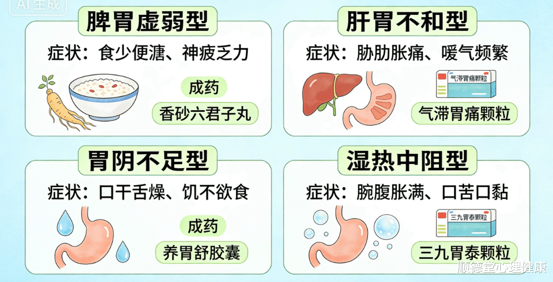 第二类是肝胃不和、气滞明显。这类人情绪一差、压力一大,胃就立刻难受:胃胀、两肋胀、嗳气频繁、反酸、心烦失眠。中医讲“肝木克脾土”,情绪不畅最伤胃。