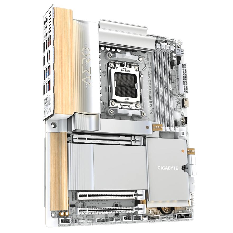 对用户来说,既要激发硬件的每一份性能,又要讲究工作台的视觉品味——稳定输出是基本功,设备美学如今也成了专业度的体现。技嘉X870E AERO X3D WOOD主板精准拿捏了这一需求:16+2+2相供电配合8层PCB确保高强度渲染编码不闪退不降频,全覆盖散热模组搭配金属背板让机器始终保持冷静状态。设计上更是直接把实木纹理元素做到散热装甲上,连BIOS界面都延续了同一套视觉语言,把实用功能和审美表达一次性给到位。前置65W PD快充接口的设计十分贴心,创作时手机平板电量告急随手就能快速回血,这种不影响工作节奏的细节才是真·生产力工具该有的素养。
