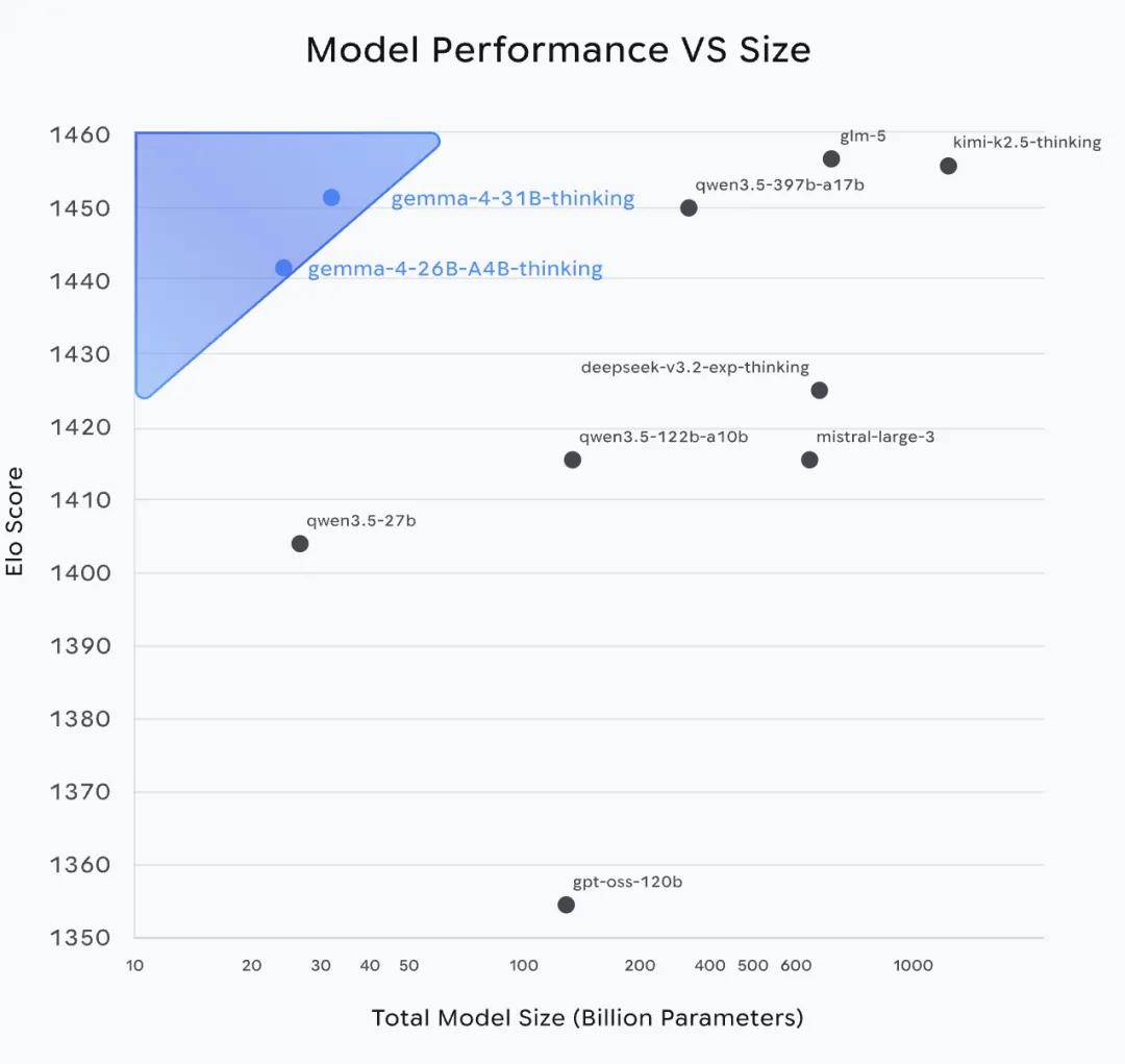 基于和 Gemini 3 相同的研究成果,新模型在 Arena AI 排行榜上拿到了全球第三的位置,而且超越了参数量比它大 20 倍的模型。更重要的是,这一代 Gemma 使用 Apache 2.0 开源许可证,可实现完全的商用自由。