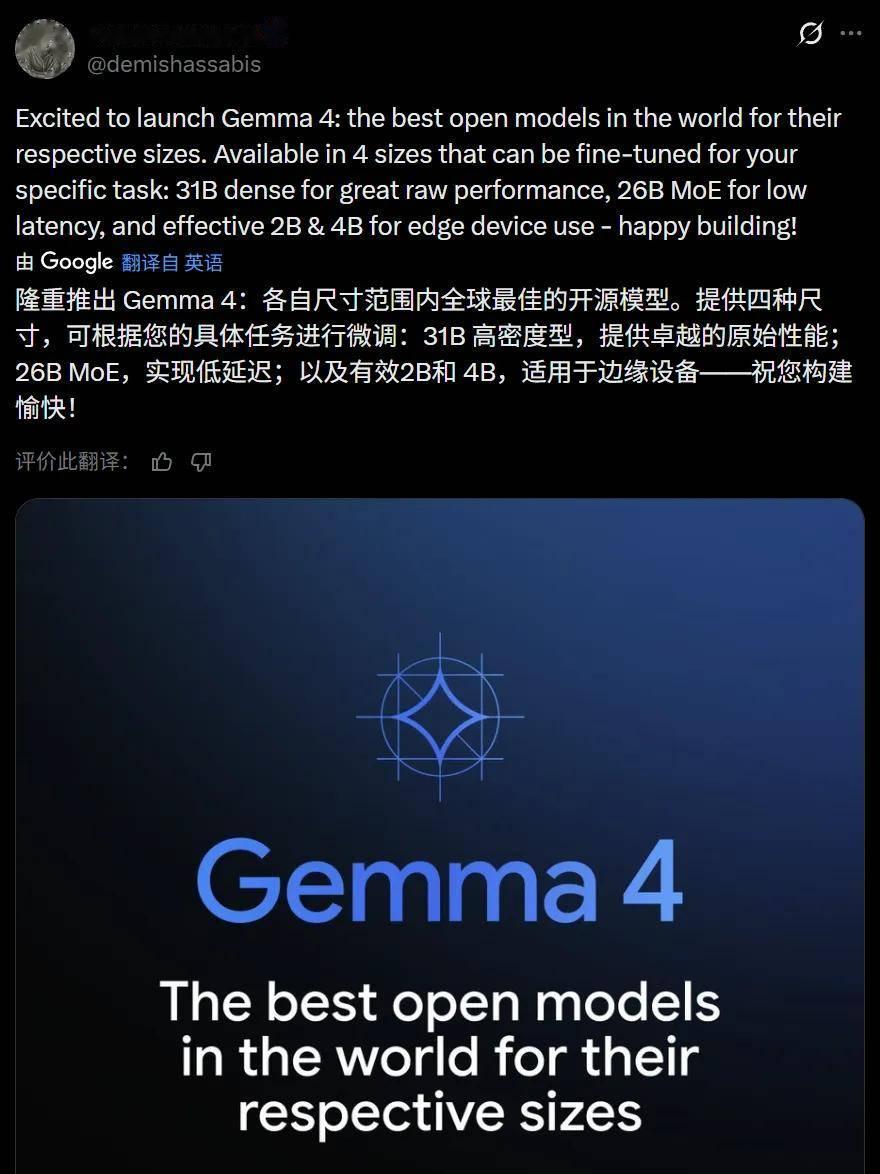 本周四晚,谷歌开源了当前开源世界最强的模型家族 Gemma 4 系列。